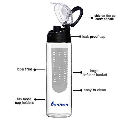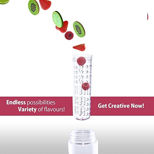 -. Feature : Now, you only need one bottle to get fruit infuser function and real shake bottle.EASY TO USE: Water + Fruit/Flavor of your choice + *SHAKE* = Your Infused Masterpiece! Add strawberries, mangos, kiwis, limes, lemons and many more to the infuser capsule, fill up the bottle with water, and make sure to shake thoroughly! You can pop it in the fridge for 15 mins or longer for extra flavor. / EASY TO CARRY: Our unique loop handle makes carrying your bottle a breeze. Enjoy your favorite flavored water on the go, in the gym, at the office or bring it along on a hike. Stay hydrated with delicious healthy water every where you go. / LEAK PROOF: Our uniquely designed lock lid guarantees a 100% leak proof experience. Not a single drop will spill whether it's upside down, sideways or in a bag. / GREAT FOR YOU AND THE ENVIRONMENT: No more unhealthy sugary drinks filled with chemicals. Make your own healthy water not only means a healthier you but also a healthier earth. By using fruit infuser bottle, you reduce your carbon footP.R.Int with less consumption of soda bottles and disposable water bottles. / SAVE MONEY: Our bottles are made from BPA free premium Tritan plastic. It can be reused over and over again. You save money by eliminating the need to buy expensive unhealthy sodas and overP.R.Iced water at the store.