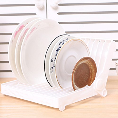 Plate Dish Drying Rack Fcoson 12 Slots Folding Plastic Drying Drainer Rack Organizer for Kitchen Cabinet White Pack of 2