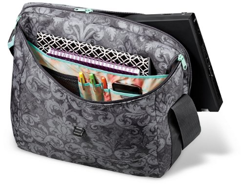 - Feature : Separate padded laptop compartment fits most 15" laptops / Adjustable padded shoulder strap / Zippered top closure / Interior organizer pockets with nylon lining / Open back panel to slide over travel bag handle
