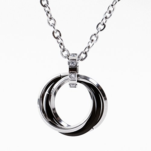 -. Feature : おしゃれメンズのためのシンプルなネックレス。AQshop 3連リング ネックレス メンズ ブラック シルバー ・立体感のある3連リングがメンズコーディネートのアクセントとなります。 / 【トップサイズ】 26mm×23mm リング直径21mm(ブラック) 23mm×20mm リング直径18mm(ピンクゴールド) 【メイン素材】リング:サージカルステンレス316L つなぎリング:キュービックジルコニア チェーン:合金 真鍮 【チェーン全長】 最大50cm(調整可能)【商品内容】3連リングペンダントトップ×1、チェーン×1 AQshopメーカー保証書  / 【特徴】 ・一つあれば大活躍!普段使い、友達とお買い物の時や、デートなど、活躍のシーンは様々。 ・つけるだけでぐっとオシャレに。 ・胸元のワンポイントでコーデがまとまる。引き締まる。シンプルさが人気のリングネックレス、Tシャツ、ワンピース、セーターなどシンプルコーデのアクセントに。 / リング素材:サージカルステンレス316Lという金属アレルギーがすくない素材で、医療用メスや高級時計等にも使われています。 / ・シャープなカットと程よいサイズ感の3連リングは、重たくならず、スタイリッシュな印象です。 ・チェーンもゴツゴツしない程よい太さで、適度に存在感のある3連リングのネックレスはワンポイントとしてカジュアルファッションに合わせやすいです。 ・3連の一つが黒(または、ピンク)のリングとなっているので、カジュアルファッションにになじみやすく、コーデが締まり、オシャレ度がアップします。
