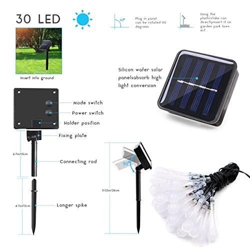 High Efficiency Solar Powered - This outdoor string lights can work up to 10 hours or more when fully charged, also will auto on at dark and charge sunlight daytime with 8 modes from steady to various flashing