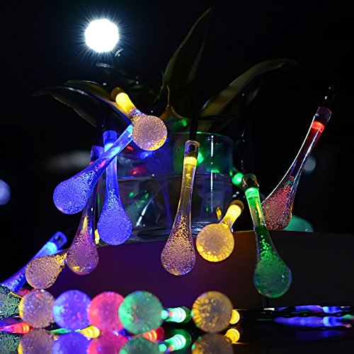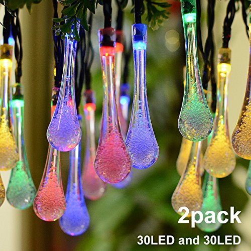 Lalapao Christmas lights 2 Pack 30 LED Solar String Lights Water Drop Fairy String Outdoor Decorations Waterproof Home Decor Light for Outside Xmas Tree Indoor Patio Garden Party Wedding (Multi Color)