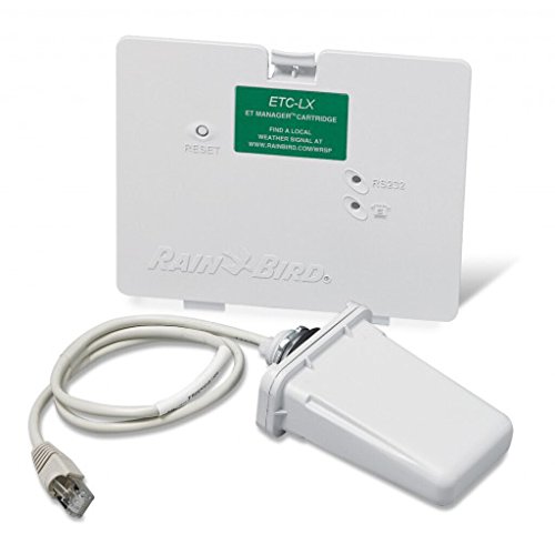 -. Feature : Optional module for Rain Bird ESP-LX Series controllers - Includes ET Manager Cartridge, receiver antenna and manual / Upgrades to an ET/Weather-based irrigation smart controller / Uses WeatherReach signal to make real-time adjustments based on hourly weather information / Easily installed with minimal needs for tools or wiring - Water savings of 20% to 50% over traditional time-based irrigation control / Incorporates a rain gauge input for optional local rain fall measure with ETM-RG tipping bucket rain gauge (sold separately)
