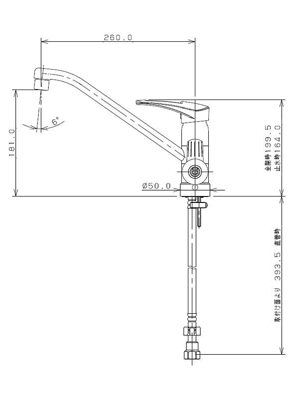 カクダイのシングルレバー混合栓です。逆流防止機能が付いています。施工が簡単にできるブレードホースを採用した商品です。