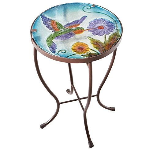 Elegant Hummingbird Table Cover Hand Painted Glass Indoor or Outdoor Metal Stand Side Table