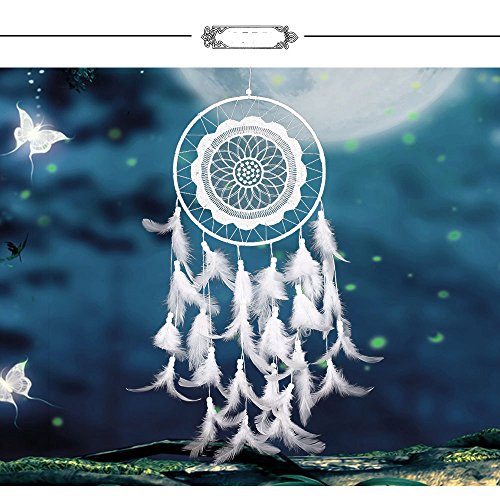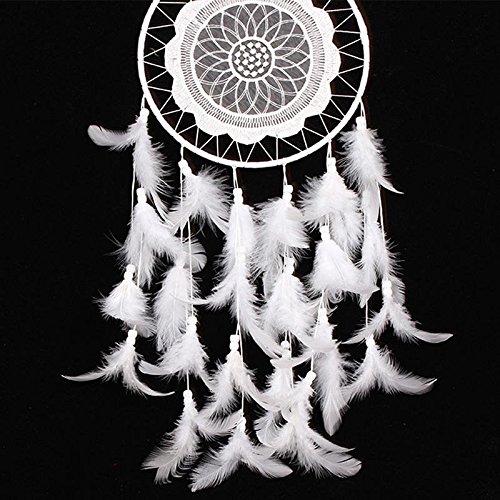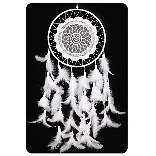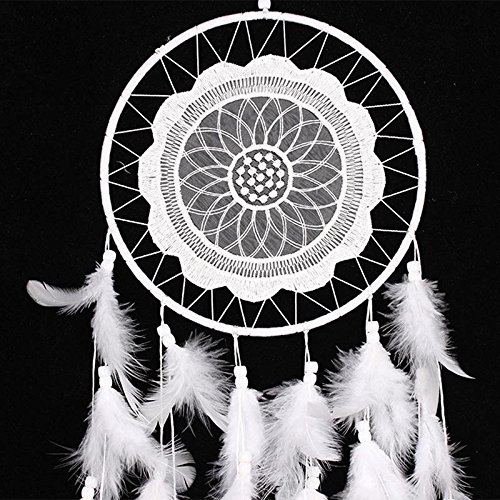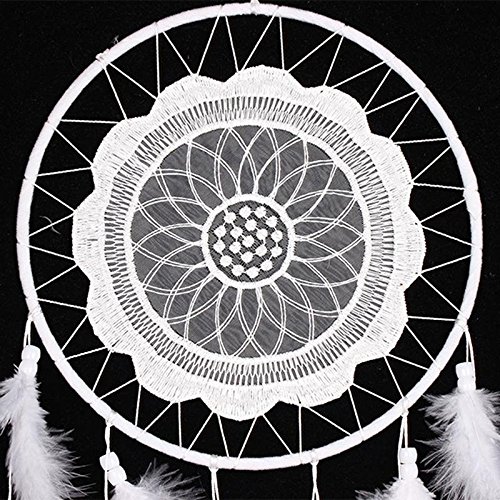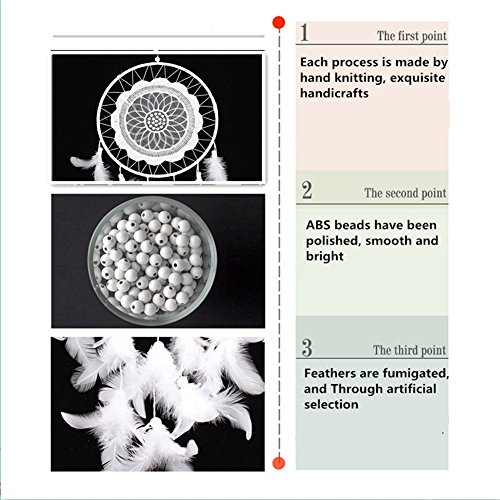 Product DescriptionIEVE White Feather Lace Hanging Decoration Dream Catchers for Room color: white Material: Stainless Steel ABS Beads Feather Lace Size: Total Length 60-65cm / 23.62 "-25.59" Function: Home, Car Decoration; Packing: Dreamcatcher * 10