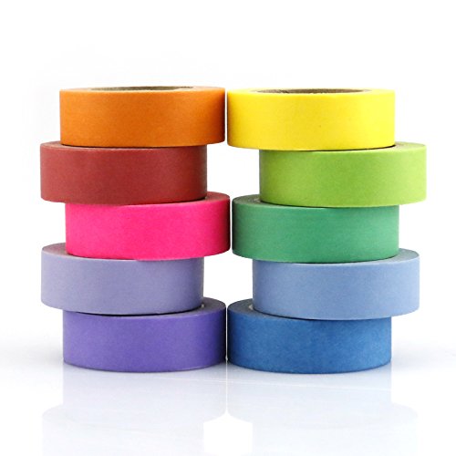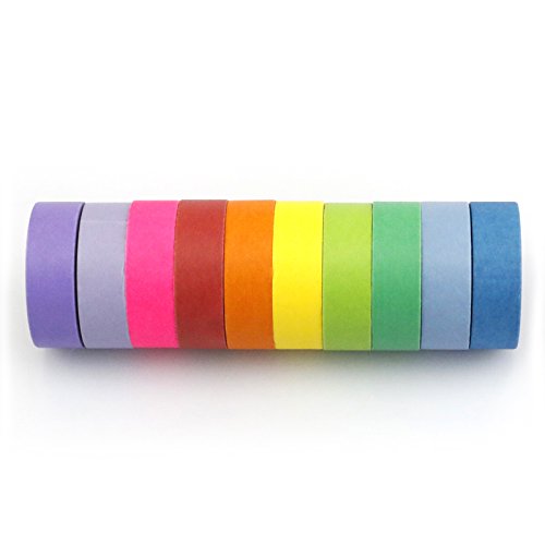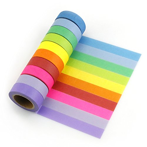 - ❤Pretty Designs: Set of 10 washi tapes in 10 different virbant colors will satisfied both kids and audlts' need. And these 10 tapes add beauty to all your craft projects.