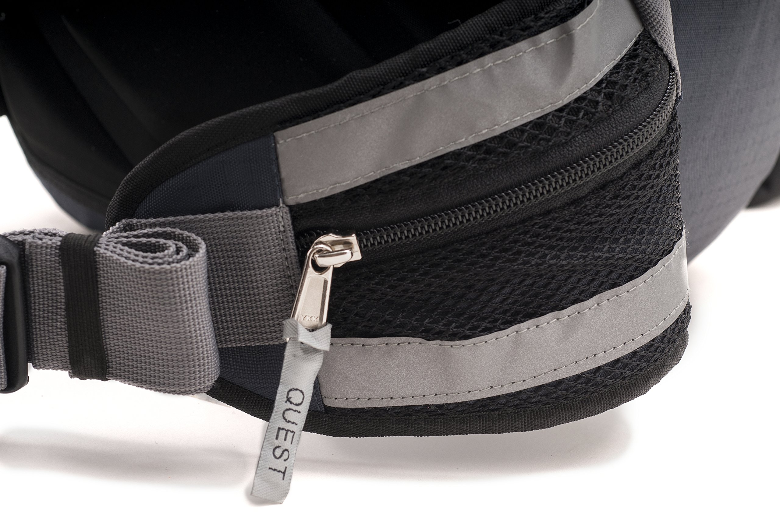 Padded back panel, heattape enhancing waterproof function Seamed front seam, 360 degree reflector, and many other useful features.