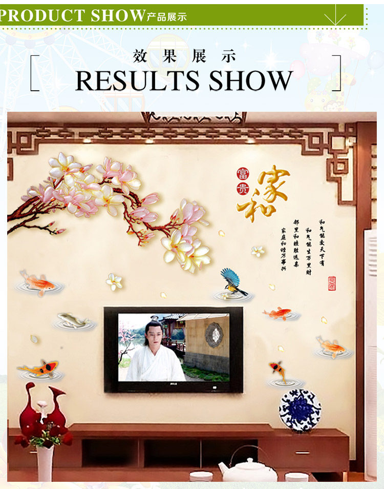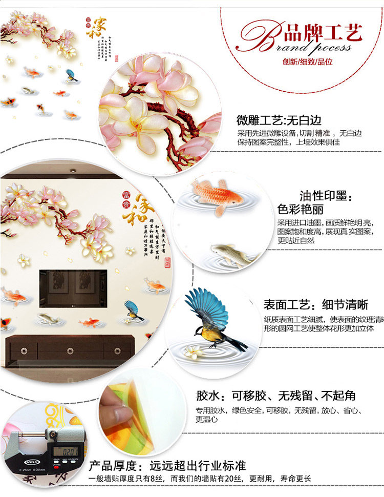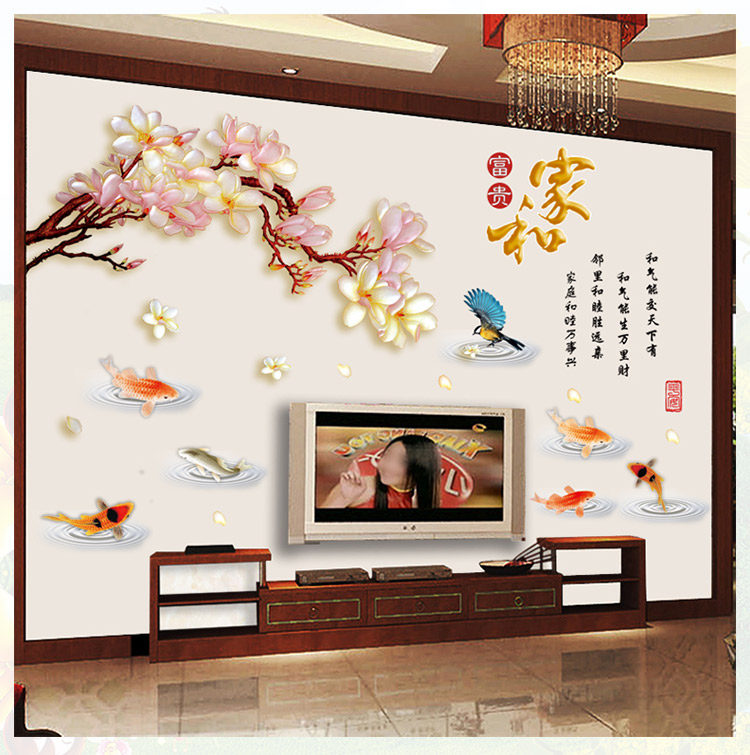 中国风梨花墙贴卧室书房创意装饰墙壁贴画温馨客厅背景墙环保贴画