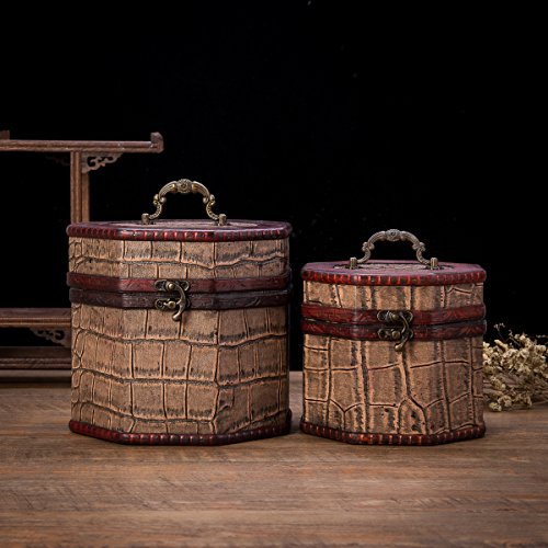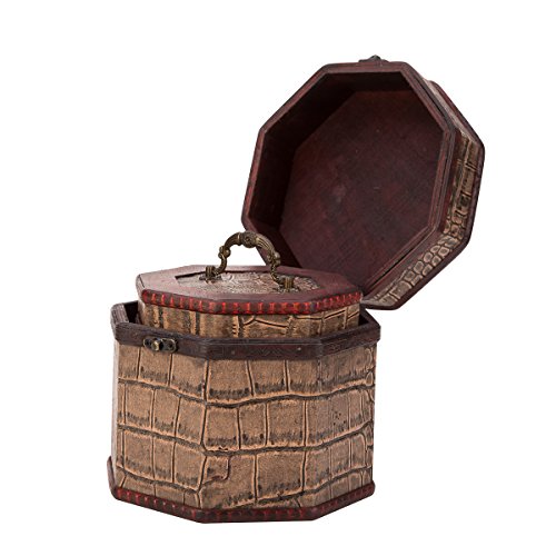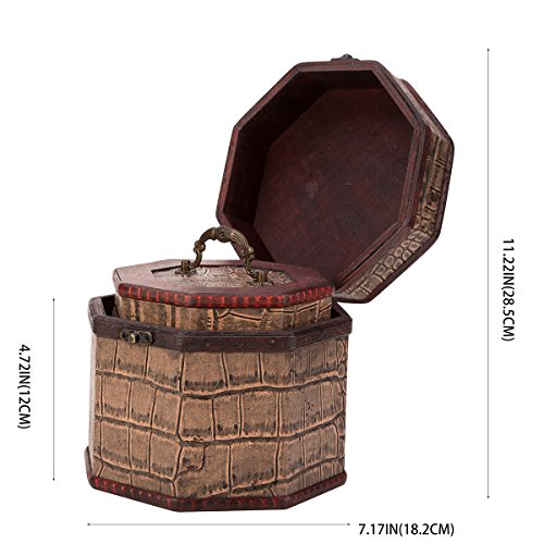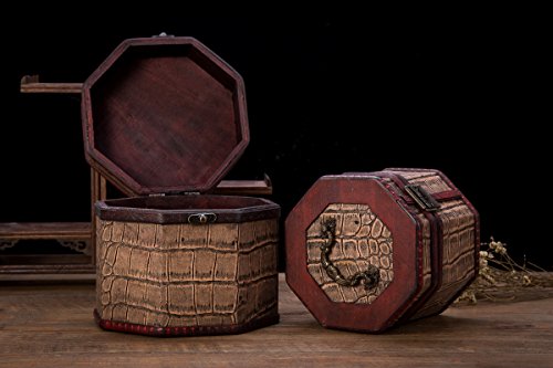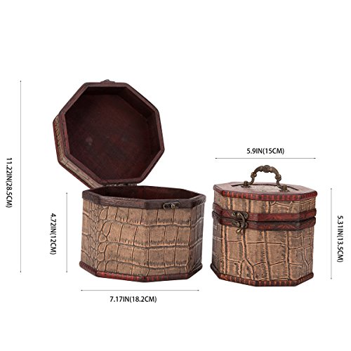 Vintage Style Crocodile Pattern Wooden Octagon Jewelry Treasure Box Storage Organizer Trinket Keepsake Chest Set of 2
