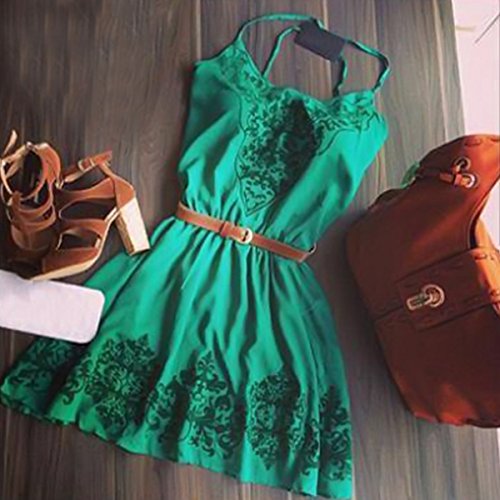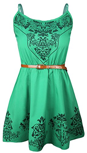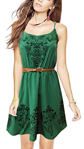 Title : FANCYINN Women Sexy Sleeveless Floral Print Casual Mini Dress Vintage Style with Belt XL