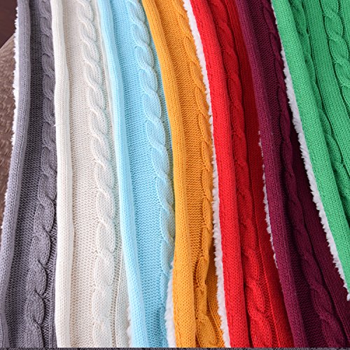 CottonTex Cotton Knitted Cable Blaket Sherpa Lined Throw Soft Warm Cover Blanket with Sherpa Lining Knitting Pattern, 47x70 Inches, Heather Grey