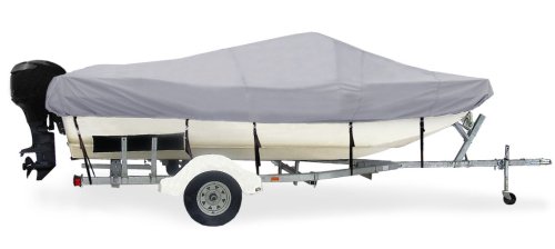 Taylor Made Products Trailerite Semi-Custom Boat Cover for Tri-Hull Boats with Inboard/Outboard Motors (14'5" to 15'4" Center Line Length / 75" Beam, Gray Coated Poly)