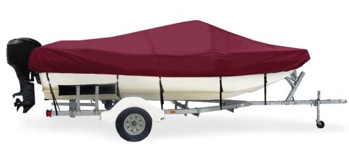 Taylor Made Products Trailerite Semi-Custom Boat Cover for Tri-Hull Boats with Inboard/Outboard Motors (14'5" to 15'4" Center Line Length / 75" Beam, Cranberry Coated Poly)