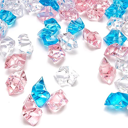 Acrylic Clear Ice Rock Diamond Crystals Rocks Fake Ice Cubes for Decoration Vase Fillers Table Scatter Party Favor Wedding Arts Crafts, Mixed Blue Pink Acrylic Ice Cubes 150 PCS by Domestar