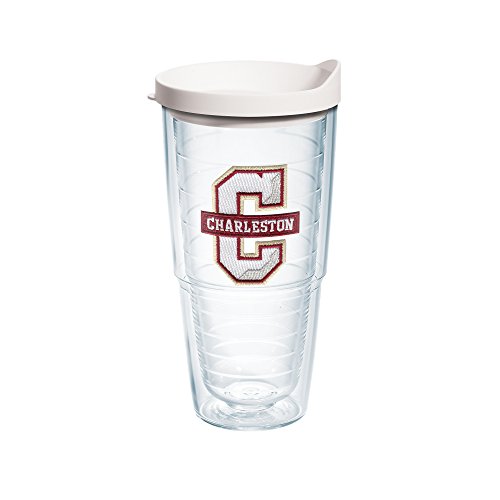 -. Title : Tervis 1135968 Charleston College Emblem Individual Tumbler with White lid, 24 oz, Clear
