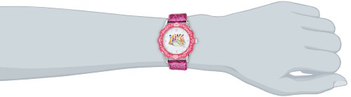 -. Binding : Watch -. Brand : Disney -. Color : Pink -. Department : girls -. EAN : 0843231064027 -. Feature : Round Stainless Steel Watch with Disney's P.R.Incess characters on dial. / Meets or exceeds all US Govt requirements and regulations for Children's watches. / Recommended for Ages 7-12 years old. / Accurate Japanese Quartz movement, scratch resistant mineral crystal, glitter strap. / Water Resistant to 99 feet: withstands rain and splashes of water, but not showering or submersion. / 1 Year Limited Manufacturers Warranty -. Label : Disney -. Manufacturer : Disney -. Model : W000405 -. MPN : W000405 -. NumberOfItems : 1 -. PackageQuantity : 1 -. PartNumber : W000405 -. ProductGroup : Watch -. ProductTypeName : WATCH -. Publisher : Disney -. ReleaseDate : 2012-10-01 -. Studio : Disney -. Title : Disney Kids' W000405 Tween P.R.Incess Glitz Stainless Steel Watch with Glitter Pink Leather Band -. UPC : 843231064027