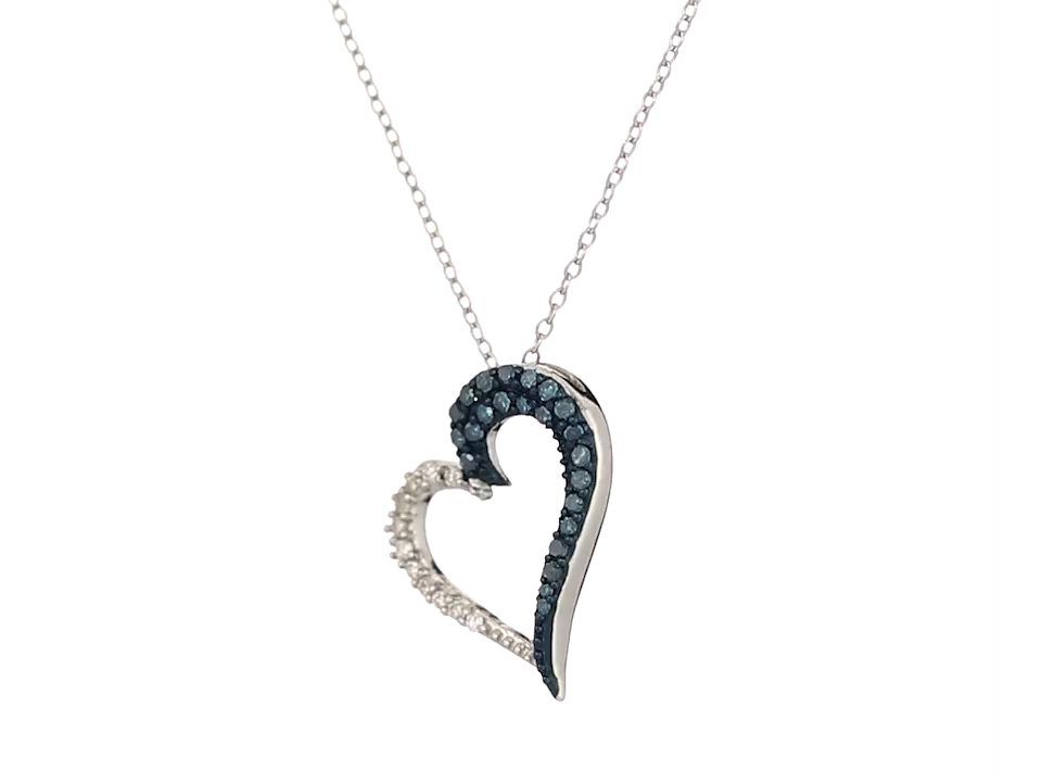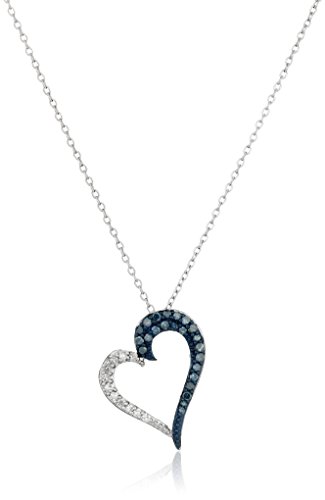 Sterling Silver Blue and White Diamond Angled Heart Pendant Necklace (1/4 cttw, J-K Color, I2-I3 Clarity), 18"