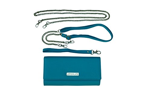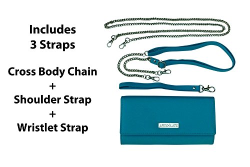 - Feature : Fully RFID protected - to prevent identity theft and stop RFID scans of your personal information / Keep yourself organized - 6 compartments to store cash and receipts, 6 vertical card slots to store and remove credit cards or id with ease, fits US/Canada passport, and most phones / Switch up your style with 3 interchangeable straps wear as a wristlet, adjustable shoulder bag or crossbody chain purse / Fits most cell phones to keep you hands-free / BONUS: Includes Gift Box, Cloth Drawstring Dust Bag, and 2 additional RFID blocking credit card sleeves for use in other bags (on us). Your identity should be protected even when using other bags or wallets