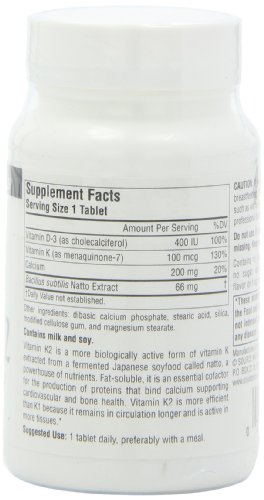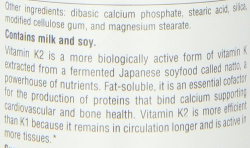 Dietary supplement. Supports bone health. Vitamin K2 is a more biologically active form of Vitamin K extracted from a fermented Japanese soyfood called natto, a powerhouse of nutrients. Fat-soluble, it is an essential cofactor for the production of protei