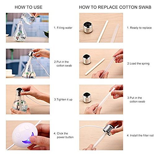 - Soft Lighting - The Air Humidifier has 7 color led lights (can be turned on/off) create a soothing effect.Color includes: White, Green, Purple, Pink, Blue, Yellow and Red.