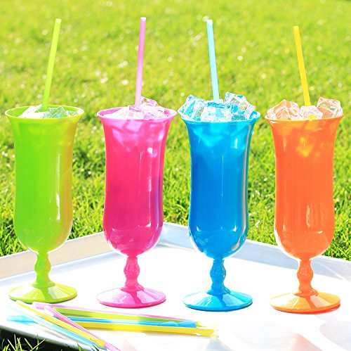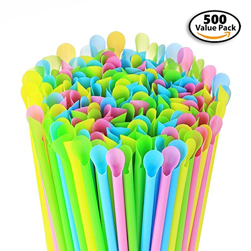 500 Pack - Sno-Cone Spoon Drinking Straws, Assorted Neon Colors Disposable Plastic Straw, 7-1/4"