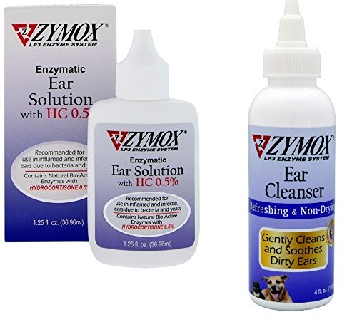-. Binding : Misc. -. Brand : Zymox -. EAN : 0600166910429 -. Feature : Nontoxic way to clean and protect dirty ears / Doesn't contain harsh chemicals or cleaners to irritate sensitive ears / Contains Lacoperoxidase, Lactoferrin and Lysozyme, which have natural bio-active properties to gently clean non-infected ears / Leaves ears smelling fresh / Inhibits bacterial growth -. Label : Pet King Brands -. Manufacturer : Pet King Brands -. PackageQuantity : 1 -. ProductGroup : Pet Products -. ProductTypeName : PET_SUPPLIES -. Publisher : Pet King Brands -. Studio : Pet King Brands -. Title : Zymox Otic Dog Pet Cat Ear Treatment 1.25 oz and Ear Cleanser 4 oz Combo Pack -. UPC : 600166910429