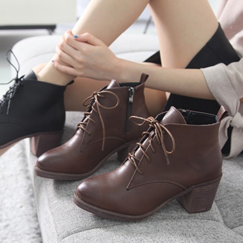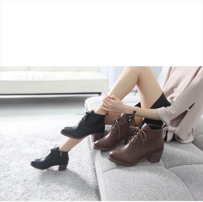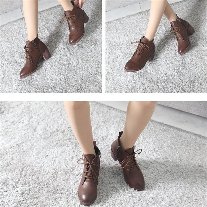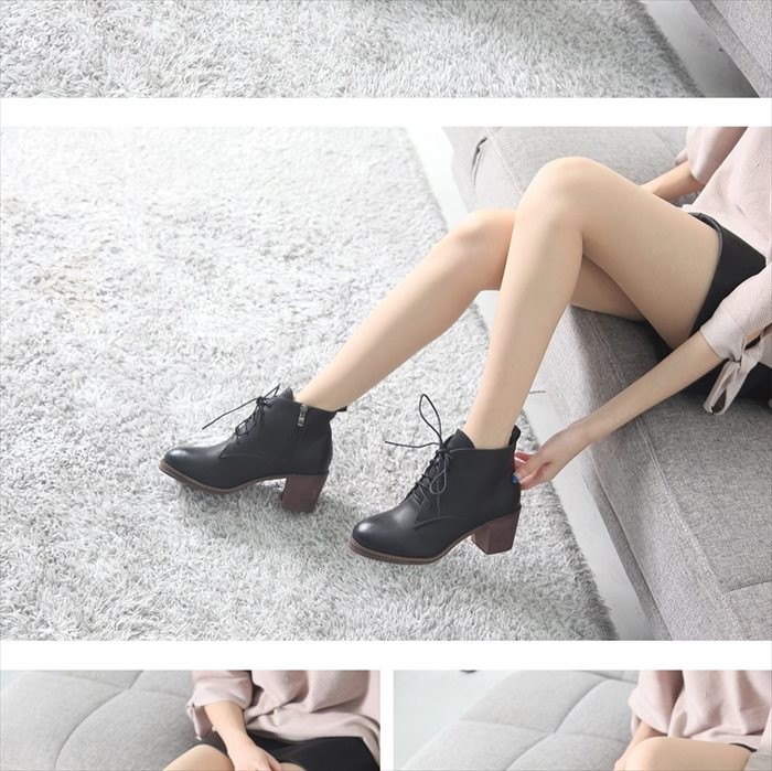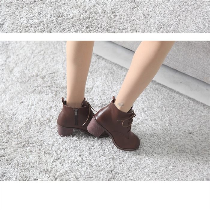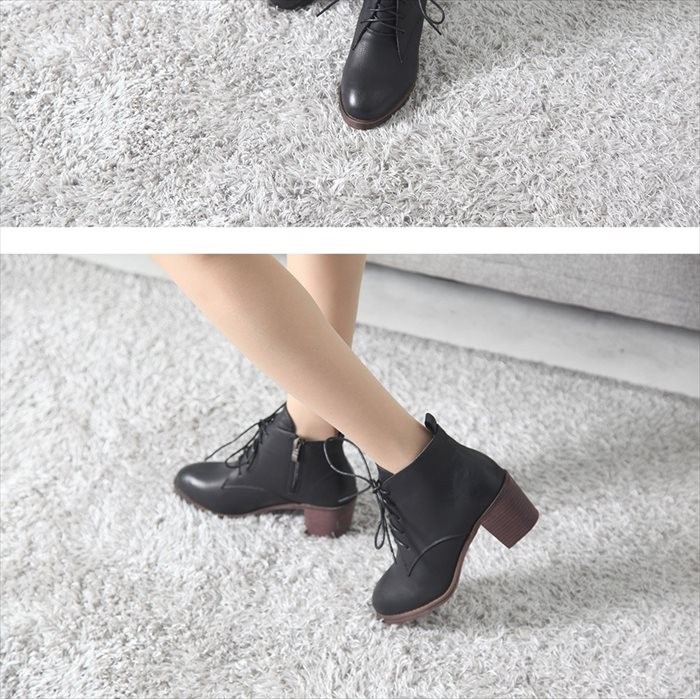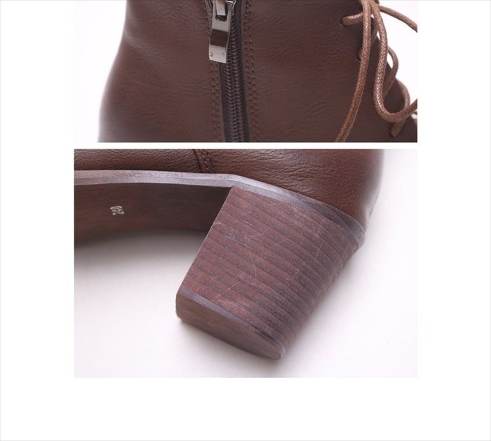 商品名:ショートブーツ レディース チャンキーヒール 太ヒール レースアップ 2017 秋冬 ファッション 靴 婦人靴