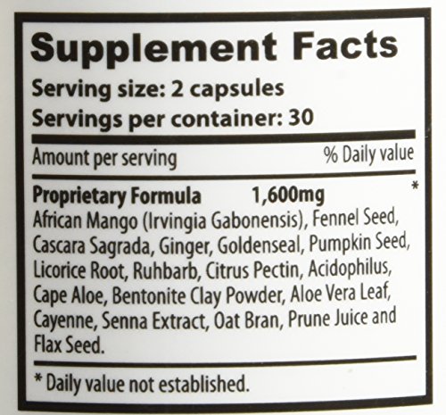 - Feature : #1 Best Seller - 100% Natural Superior High Quality Body Detox Weight Loss Supplement, 1600mg Formula. / 100% Pure Detox Cleanse - Assists as Colon Cleanser - Natural levels of Anthraquinone Glycosides / Contains pure African Mango - Helps stimulate the colon - Works as a great laxative and colon cleanser. / Non-GMO and Gluten Free - No fillers, binders or artificial ingredients / No risk - 100% No Questions Asked Money Back Guarantee - Order Now!