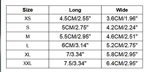 Size S----- Long 5CM/2.75"------Wide4.2CM/2.24" / Size M----- Long 5.5CM/2.95"-----Wide4.6CM/2.51"