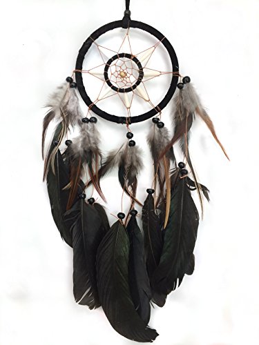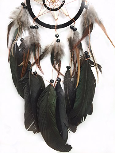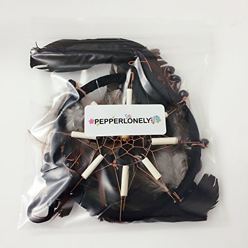 PEPPERLONELY Dream Catcher Black Feathers 4.5 Inch Diameter, 17 Inch Long