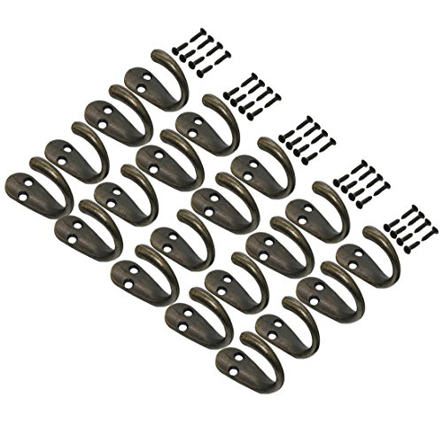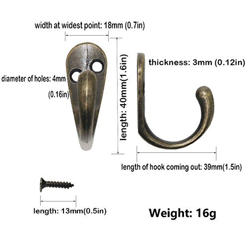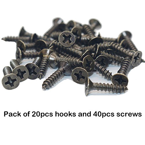 Gutapo 20pcs Vintage Retro Bronze Hooks Door Wall Closet Mounted Single Hook Hangers with 40pcs Screws