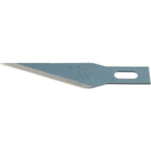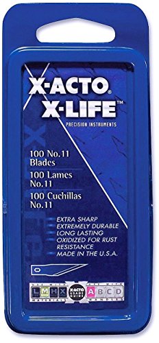 The X-ACTO No. 11 Classic Fine Point knife blades are the perfect accessory to a true tool of precision. When elaborate, detailed cuts need to be made, the No. 11 blade is the blade to choose. Because the blade is made with quality sharpened carbon steel, you can make the most detailed, meticulous cuts knowing that the blade can stand up to the pressure. X-LIFE blades provide superior sharpness and extended life! Each blade is blue oxidized to prevent rust and increase durability. X-ACTO knife blades are crafted with quality, carbon steel sharpened for a reliable cut and a strong blade. X-ACTO knife blades fit with most X-ACTO knife models. The original X-ACTO knife has been praised for more than 50 years as the standard for precisionFeature