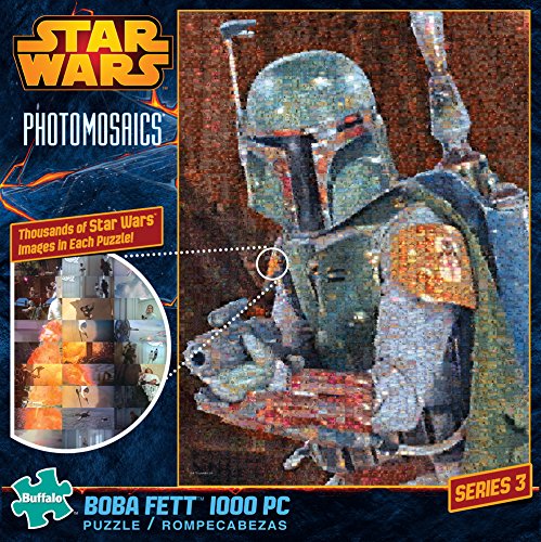 -. Binding : Toy -. Brand : Buffalo Games -. Department : Star Wars -. EAN : 0079346106134 -. Feature : 1000 piece jigsaw puzzle / Finished size is 26.75 x 19.75 inches / Includes bonus poster for help in solving / Manufactured from premium quality materials / Made in the USA -. IsAdultProduct : 0 -. ItemPartNumber : 10613 -. Label : Buffalo Games -. Manufacturer : Buffalo Games -. Model : 10613 -. MPN : 10613 -. NumberOfItems : 1 -. PackageQuantity : 1 -. PartNumber : 10613 -. ProductGroup : Toy -. ProductTypeName : TOYS_AND_GAMES -. Publisher : Buffalo Games -. Studio : Buffalo Games -. Title : Buffalo Games Star Wars Photomosaic: Boba Fett - 1000 Piece Jigsaw Puzzle by Buffalo Games -. UPC : 079346106134 -. Warranty : 90 day warranty against manufacturer defects