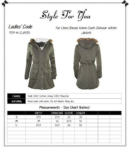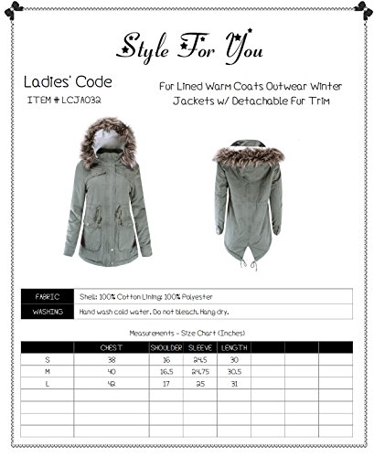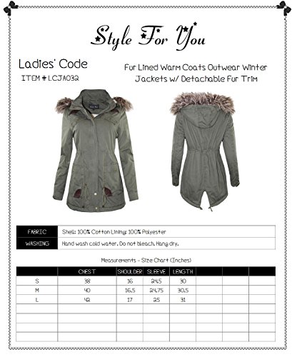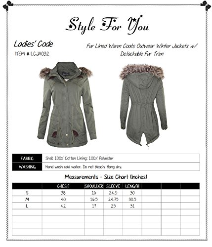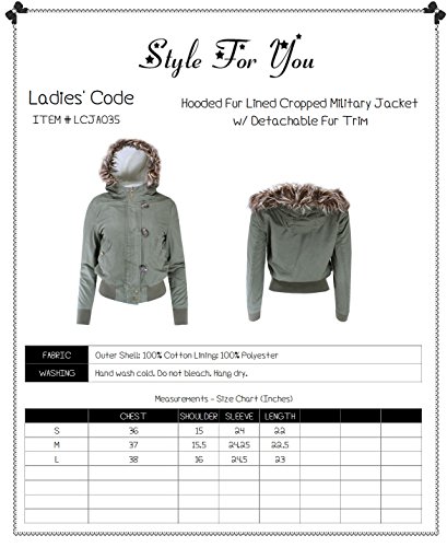 ★ Ladies' Code is the place you go for stylish, trendy, unique, wide range of one-of-a-kind items for affordable price. Our mission is to show you that you can look gorgeous and experiment with styles and fashion at any age. It's all about having fun with style and fashion! Our items can help to make you look better, but also feel more confident and happy. Stay on top of the hottest styles and shop Style For You to be your own style and show your personality! ★ LCJA032: Fur Lined Warm Coats Outwear Winter Jackets w/ Detachable Fur Trim | This faux fur trim hooded utility jacket features detachable fur trim, inner fur sherpa, sherpa in hood, zipper closure, two pockets, adjustable shape-defining drawstrings at waist, pocket details on front chest, PU contrast details, and slit cut on back. ★ LCJA033: Fur Lined Sherpa Warm Coats Outwear Winter Jackets | This faux fur trim hooded utility jacket features inner fur sherpa, hood with inner fur, zipper and snap button closure, two pockets, adjustable shape-defining drawstrings at waist, and pocket detail on front chest. ★ LCJA035: Hooded Fur Lined Cropped Military Jacket w/ Detachable Fur Trim | This cropped hooded bomber military jacket features fur lining sherpa inside, detachable fur trim, elastic rib hem cuff, zipper and hook button closure, and snap button pockets. ★ LCJA036: Hooded Fur Lined Safari Military Jacket w/ Detachable Fur Trim | This utility jacket features detachable fur trim, inner fur sherpa, sherpa in hood, snap button zipper closure, two pockets, adjustable shape-defining drawstrings at waist, and pocket details on front chest.