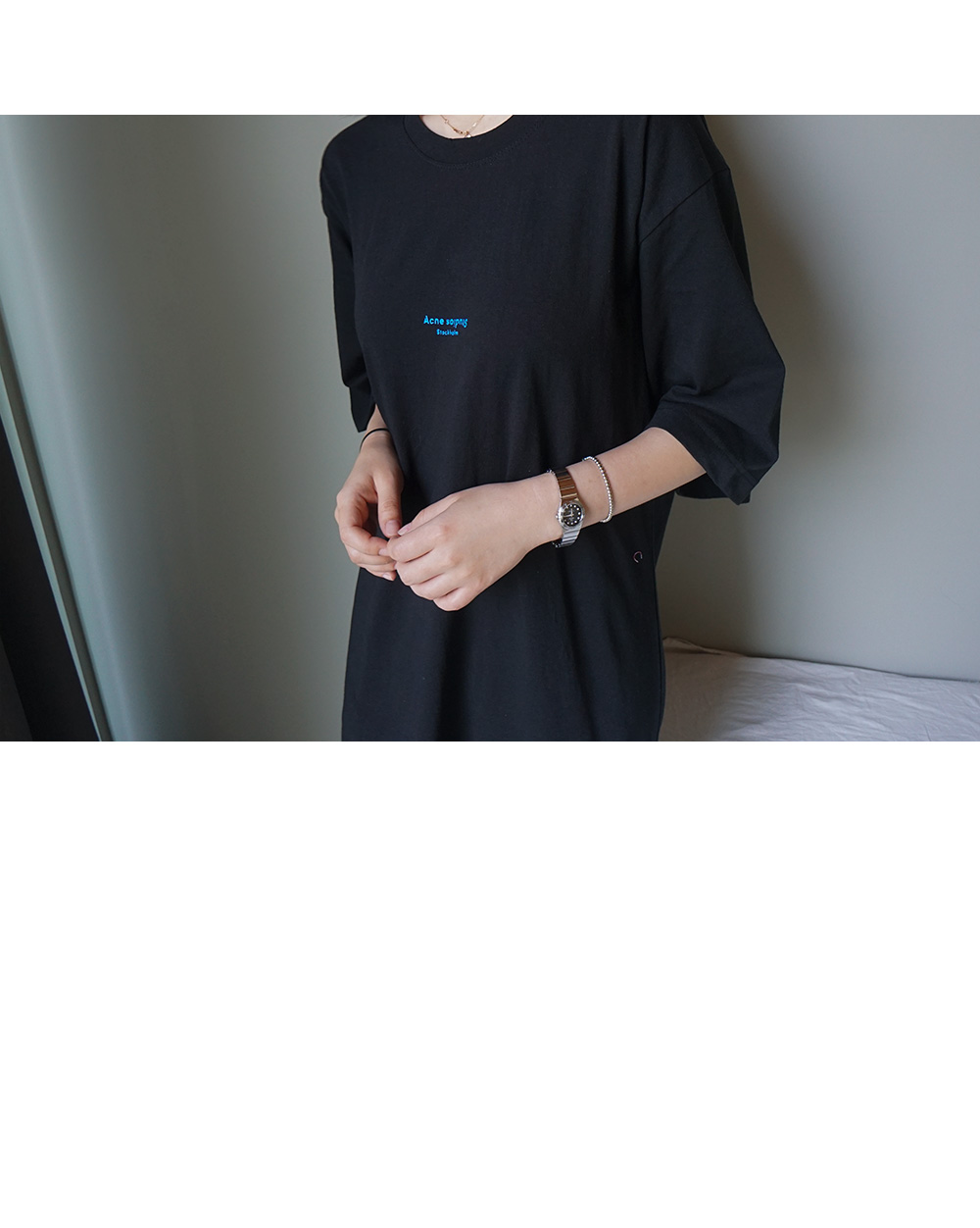 가슴전면의 심플하게 타이포 프린트가