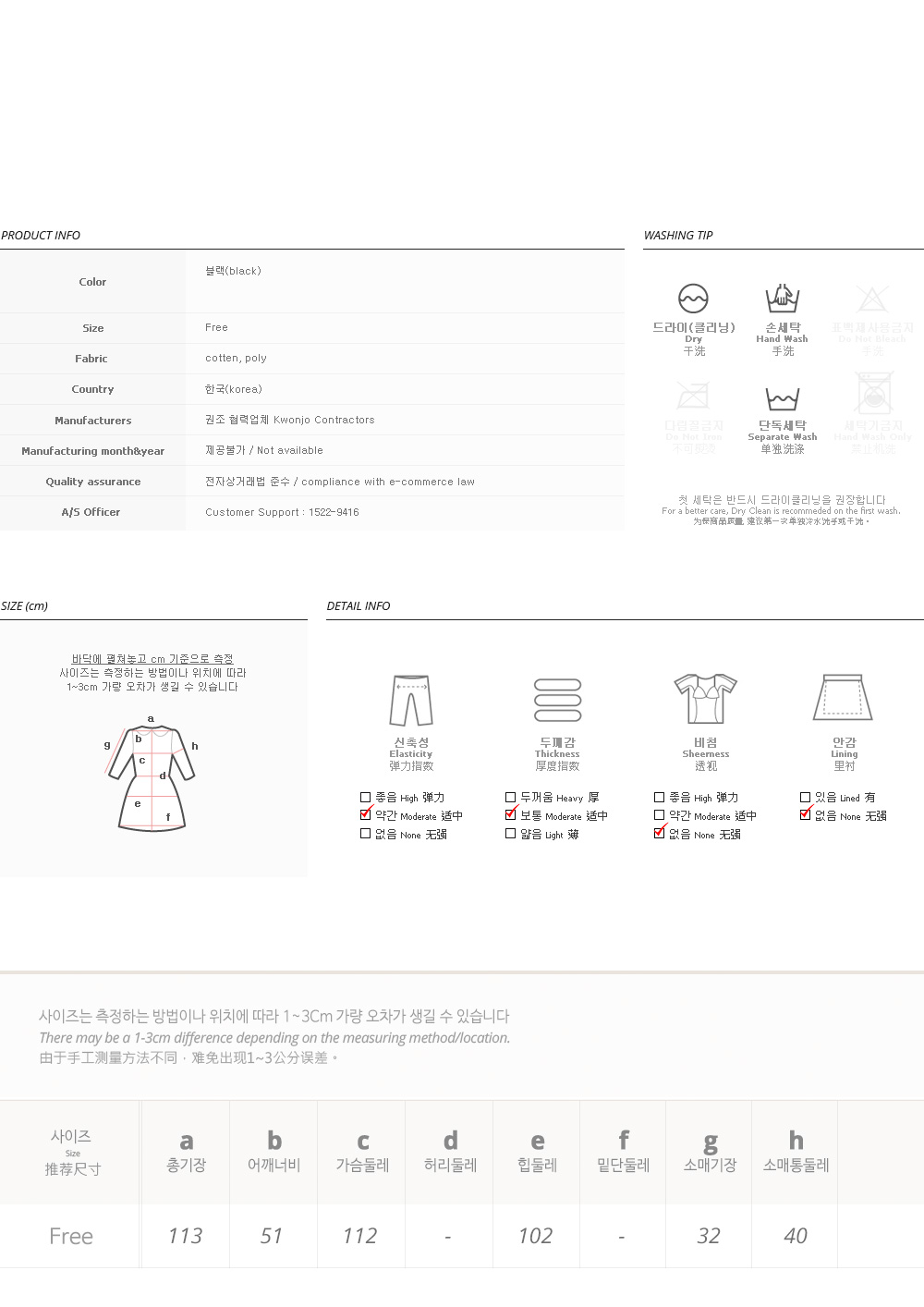 피팅 컬러와 사이즈는 블랙, Free 입니다
