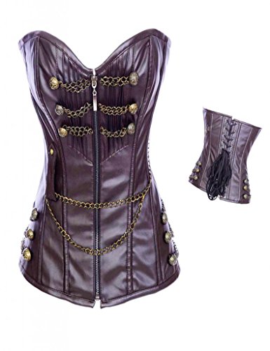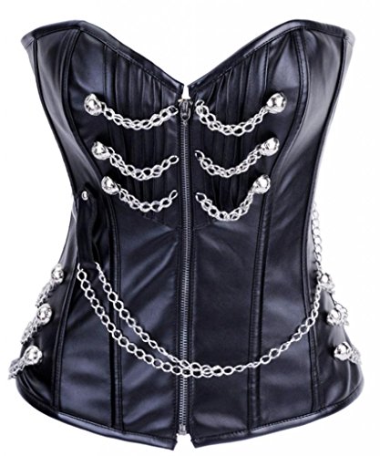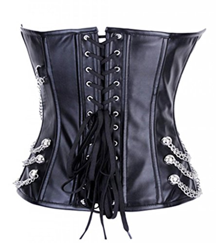 Product Description Faux Leather with metal chains details,The item includes the corset and matching panty. Size from S to XXL.Full steel boned and Lace up back. Please check product' SIZE INFO to make sure the item fits your measurements 0