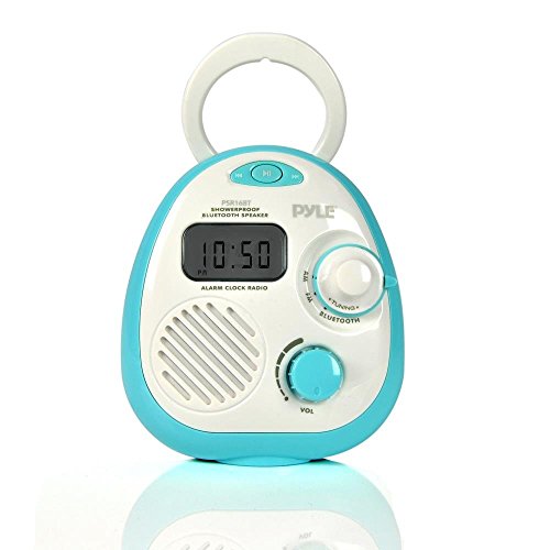Pyle - Shower Radio Waterproof Wireless Bluetooth Music Shower Alarm Clock Radio Speaker with AM FM Tuner (PSR16BT)