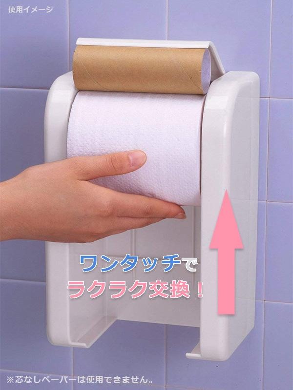 | 取替え用のトイレットペーパーを一つストックでき、ストックしたペーパーを片手で持ち上げるだけで交換できます。取り付けの際に付属の粘着テープで仮止めができます。コンクリート等の硬質壁への取り付けに便利なプラグ付き!本体のネジ穴の形が長穴になっているので、既設のホルダーのネジ穴を利用して取り付けることができます。 |