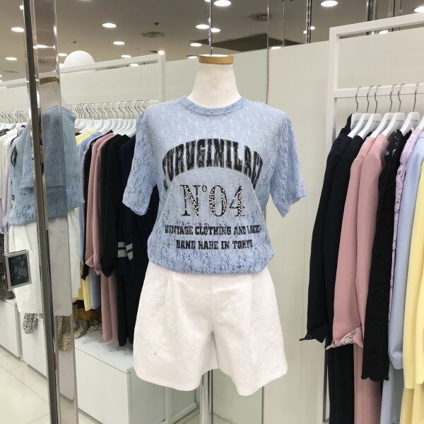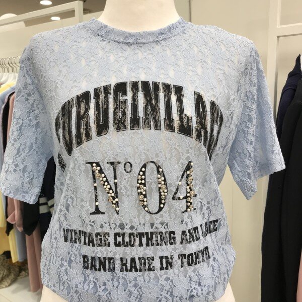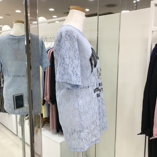 레터링 레이스 티셔츠 입니다전판 레이스처리로 고급스러우면서 여성스럽게 연출된답니다신축성이 있어 착용하시기도 좋답니다여름에 유용하게 입으실 수 있는 아이템!총장 62cm(FREE)