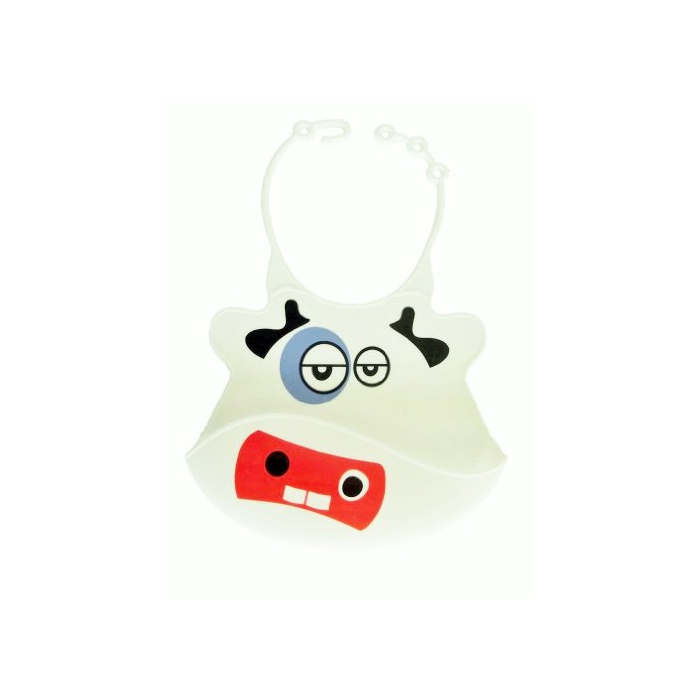 원본상품명: よだれかけ スタイ 食事エプロン おもしろ ベビ? ビブ bib シリコンゴムなので使い勝手?群! (白 ウシさん)