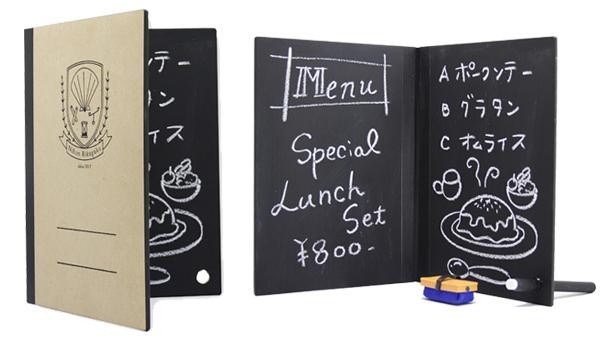 | 一見普通のノートに見えますが、木でできたノートをひらくと中面が黒板になっています。ノートのように書き留めたり、開いて置いても安定感があります。手を汚さないチョークホルダーは黒板の穴に入れることができ便利。SSサイズの黒板拭きも付いたノートセットです。 |