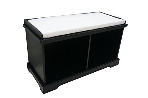 -. Title : Black Entryway Storage Bench - Cubby Hole Design with cushion