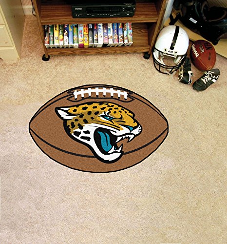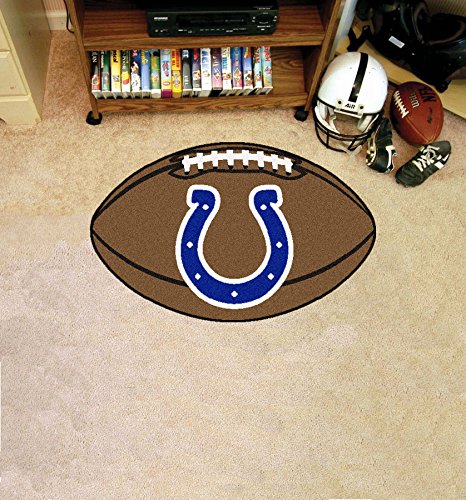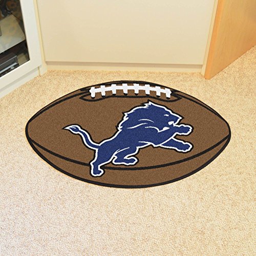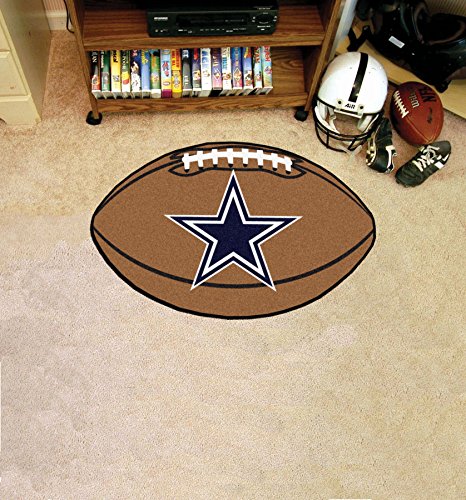 Product Description Your fellow football fanatics can feel welcome as soon as they set foot into your house! The Fanmats NFL® team football mat is made of polyester with a non-skid Duragon® latex backing. The football-shaped mat is chromo jet painted in team colors and designed with a large team logo. 0