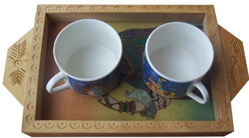 - Serving tray made with combination of Gem Stone painting & Wood Carving