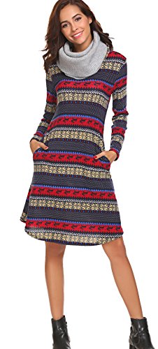 Women’s Casual Printed Knit Swing Dress Long Sleeve Loose A Line T-Shirt Dress Blue XXL