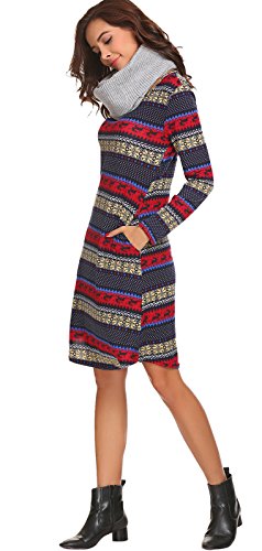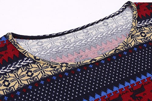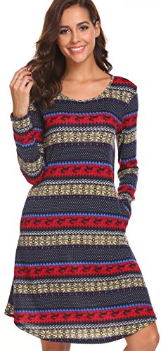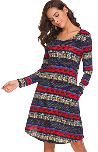 Womens Christmas Dress Deer Print Dress Long Sleeve T-Shirt Dress Blue XL