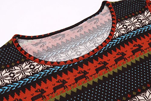 Womens Fit and Flare Long Sleeve Christmas Patterned Skater Dress Brown XL