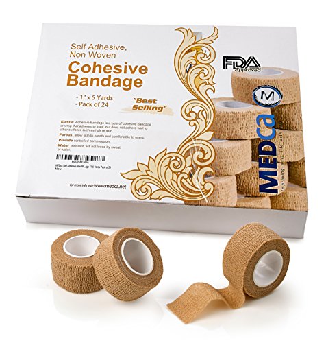 MEDca Self Adherent Cohesive Wrap Bandages 1 Inch X 5 Yards 24 Count with Strong Elastic First Aid Tape for Sprain Swelling and Soreness on Wrist and Ankle (Skin Color)